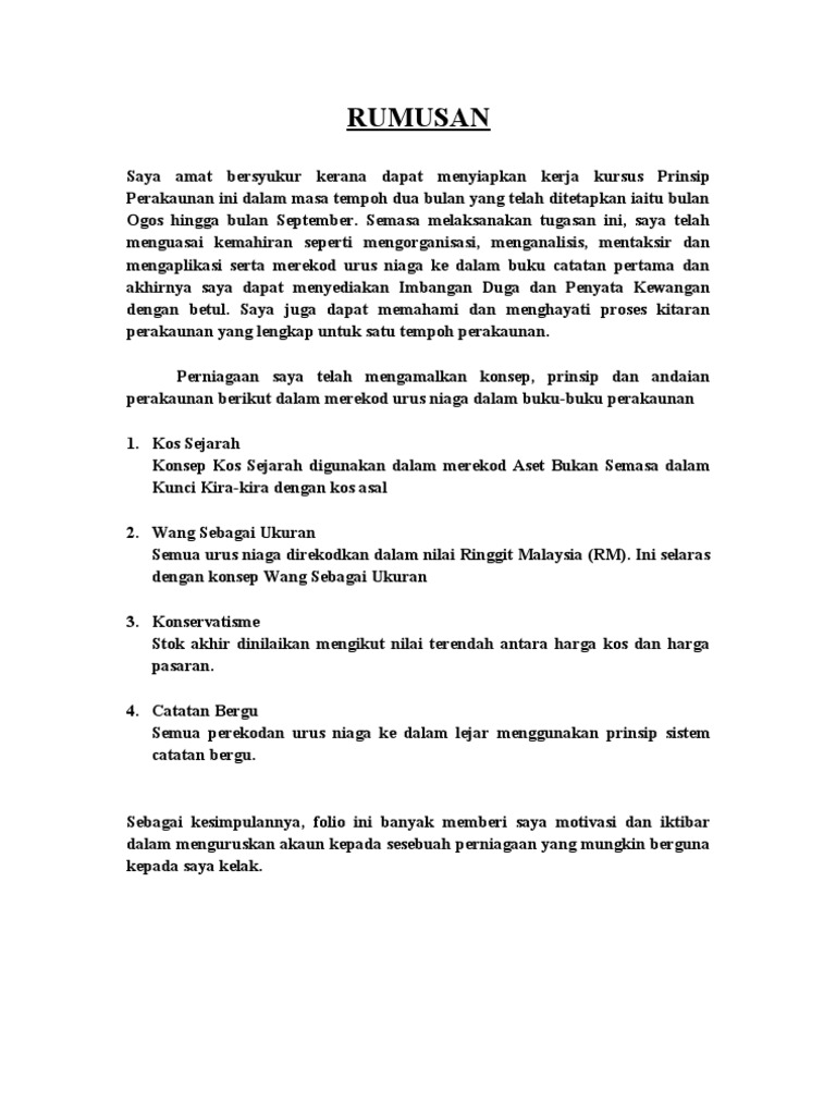 Kerja kursus prinsip perakaunan prinsip akaun kerja kursus prinsip akaun spm 2020 kerja kursus pa. Dalam bahagian pengenalan selain daripada memperkenalkan bab 5 pengkaji juga membuat ringkasan susun galur kajian ini. Rumusan Docx Rumusan Saya Amat Bersyukur Kerana Dapat Menyiapkan Kerja Kursus Prinsip Perakaunan Ini Dalam Tempoh Masa Yang Ditetapkan Iaitu Bulan Mac Course Hero.