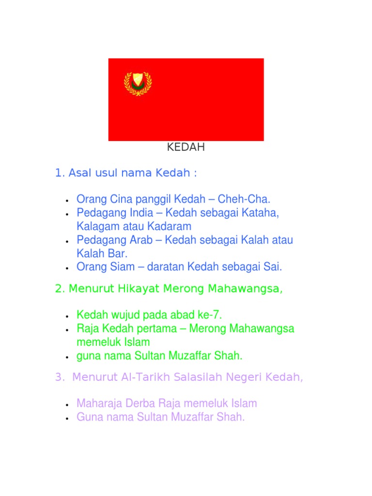 Ha jadi korang nak tahu kena tonton video niSpeaker. Negeri Jelapang Padi ini mempunyai rentetan sejarah yang panjang dan sememangn. View ASAL USUL NEGERI KEDAHpptx from HEALTH SCI CSI at MARA University of Technology.